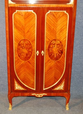 Generation eigene restaurierungswerkstatt vor ort. Antiker schrank mit intarsien. Jahrhundert 1 tür mit spiegel intarsien siehe fotos 1 schublade abmessungen ca. B99 x h173 x t47 cm.