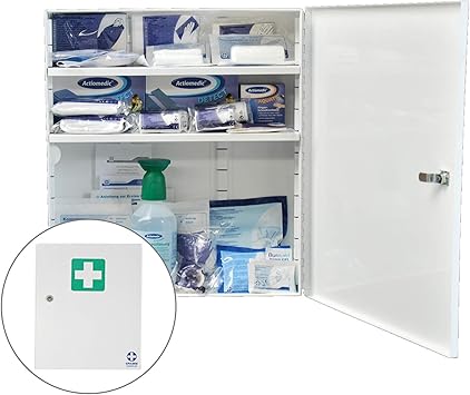 Söhngen verbandschrank pro werkstatt gefüllt 40 2 x 46 2 x 11 2 cm weiß. Notfall beatmungshilfe hände antisept spray verbandbuch aushang 1 hilfe sprühpflaster 4 9 von 5 sternen 32. Der erste hilfe schrank oder auch verbandsschrank genannt ist die repräsentative alternative zum erste hilfe koffer. Weiß mit erste hilfe symbol inhaltsumfang.
