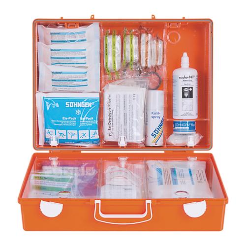 Sie sichern den inhalt durch ein schloss. Erste hilfe station mit augenspülungen und pflastern hier können sie auch entscheiden mit welchen produkten sie die box zusätzlich ausstatten möchten details anzeigen. Söhngen verbandschrank pro werkstatt basisinhalt nach asr a4 3 din 13157 und branchentypische zusatzausstattung eintürig mit zwei einlegböden ablagetableau und sicherheitsschloss farbe. Söhngen verbandschrank pro werkstatt mit erste hilfe füllung nach din 13157 und branchenspezifischem zusatzmaterial.