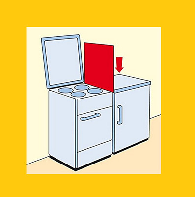 Zur verwendung zwischen kühlschrank und herd. Je mehr abstand zwischen herd und kühlschrank desto besser.