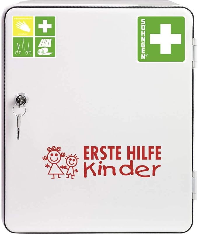 Erste hilfe schrank zur wandmontage von söhngen. Liebe ersthelfer und verantwortliche in kindertageseinrichtungen vielleicht haben sie schon an einem training erste hilfe am kind teilgenommen und so viele informationen rund um die erste hilfe aber auch die vorbeugung von notfällen erhalten diese checkliste möchte die ideen aus dem seminar zu ihnen in die einrichtung tragen. 302 x 362 x 140 mm eintürig tür mit dichtungsprofil und praktischem klapptableau innen ein einlegeboden höhenverstellbar sicherheitsschloss mit zwei schlüsseln siebdruckbeschriftung farbpiktogramme für stationären einsatz. Inhalt 1 stück 96 50 erste hilfe füllung kindergarten inhalt 1 stück 30 22 erste hilfe tasche scout kita großer wandertag inhalt 1 stück.