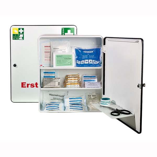 Söhngen erste hilfe schrank. Der verbandschrank berlin von söhngen ist ein äußerst robuster weißer erste hilfe schrank. In dem raumwunder bringen sie sogar die große erste hilfe füllung nach din 13169 unter. Mit sicherheitsschloss 2 schlüsseln befestigungsmaterial ablagefächern und einlegeböden söhngen. Erste hilfe und notfallmedizin seit 90 jahren söhngen ein unternehmen ohne stillstand.