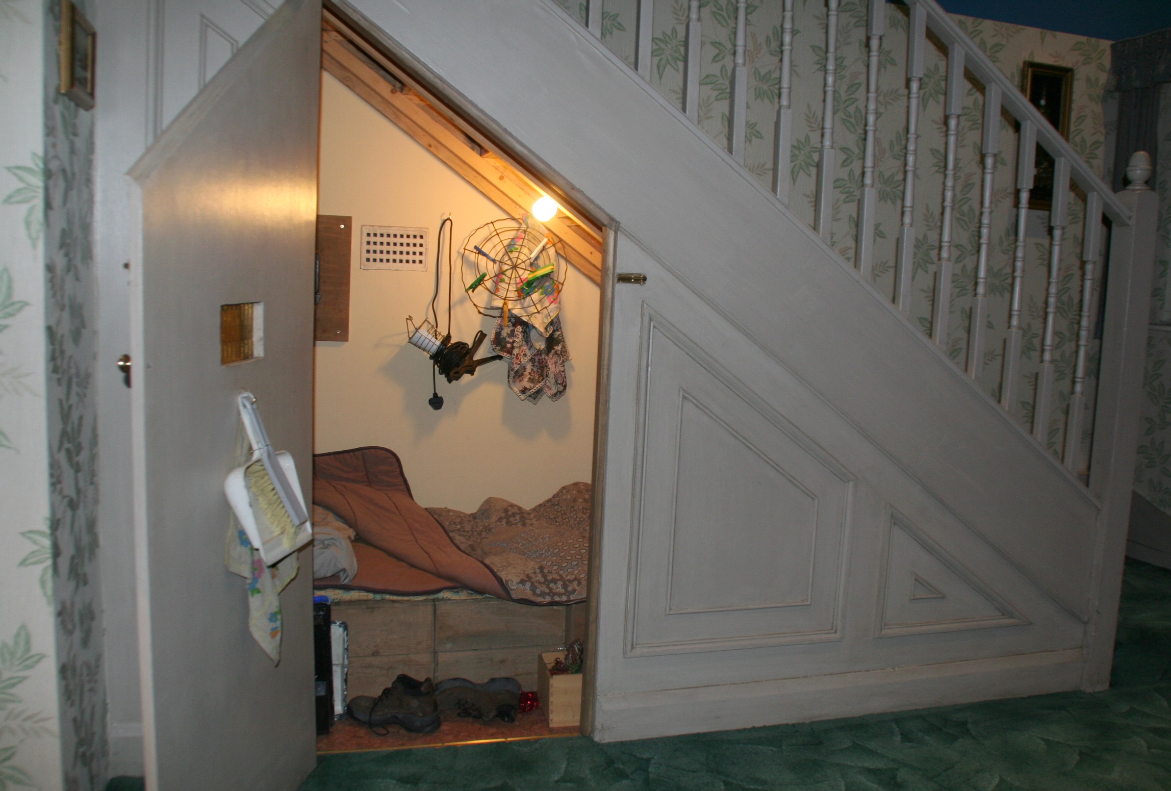 Dream privet drive cupboard under the stairs. Unter der treppe ist ein schrank in dem harry bis kurz vor seinem elften geburtstag gemeinsam mit vielen spinnen schlafen musste. In der unteren etage befindet sich das repräsentative wohnzimmer mit kamin die klinisch reine küche und ein flur mit treppe ins obergeschoss. Im haus wohnt helen mit tochter die ich noch kennenlernen werde und hund flissy wenn das richtig buchstabiert ist der volle name wäre felicity.