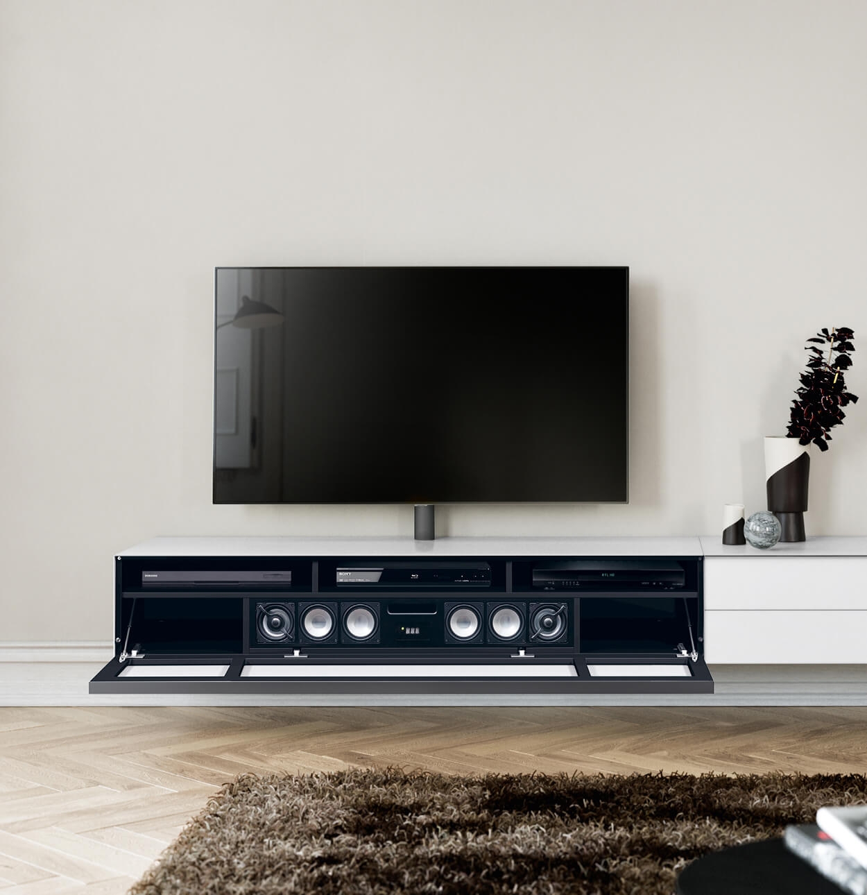 Sie stehen alle auf dem boden und hängen. Moderne tv schränke aus glas kiefer buche oder eiche in schwarz oder weiß finden sie in großer auswahl bei höffner. Trotz der vielen kabel satellitenboxen dvds blu rays sorgen unsere tv möbel und tv racks hier für ordnung. Neben dem fernseher deiner dvd sammlung und deiner hi fi anlage hast du auf deinem tv möbel noch genug platz für die kompakten boxen.