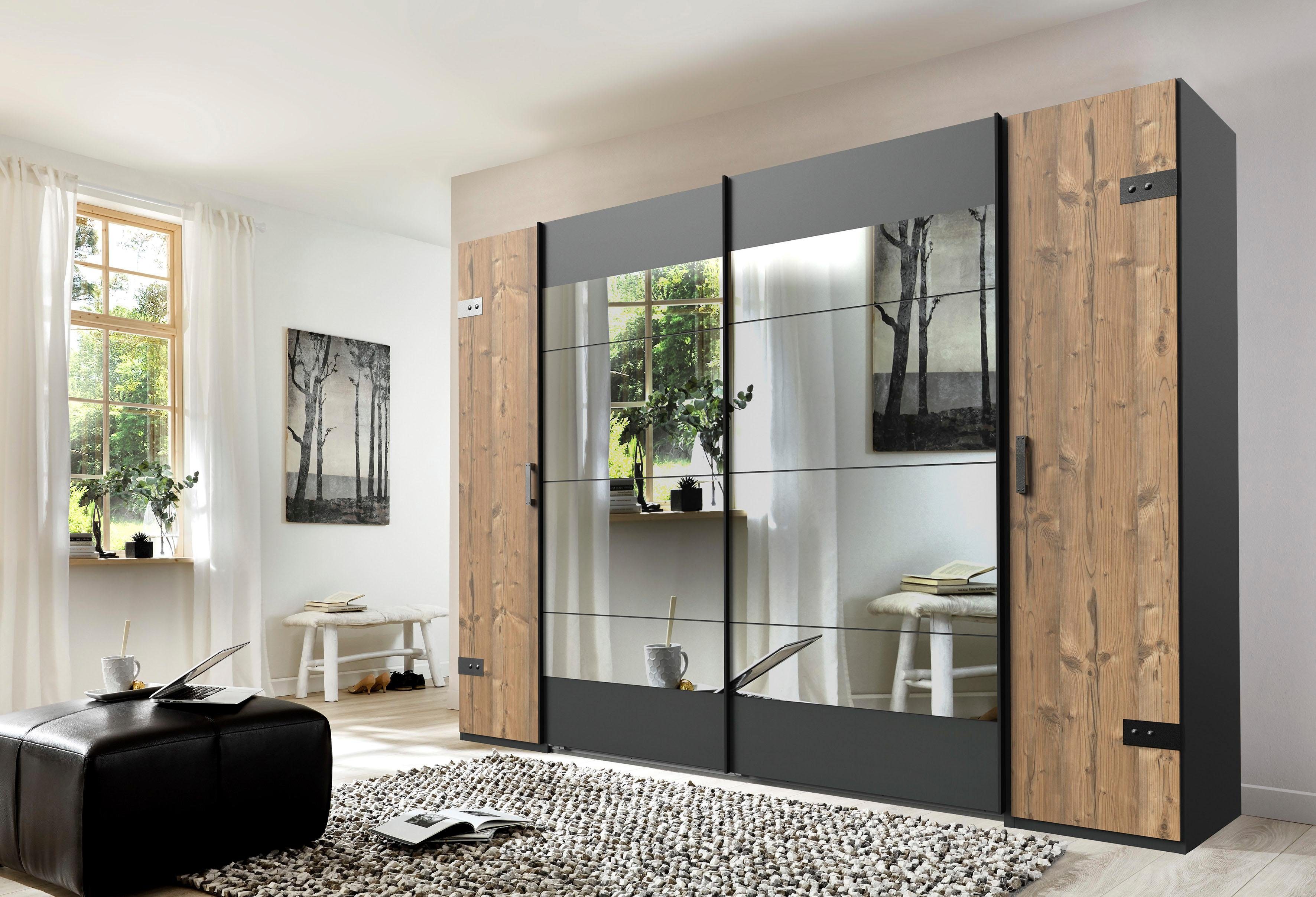 2 schubkästen massivholz tür mit spiegelfront maße b t h.